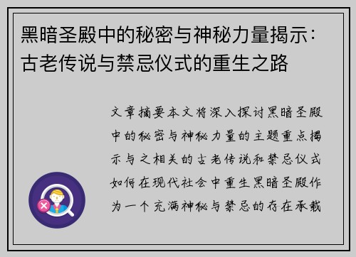 文章摘要:密林遗迹,这个神秘而又充满吸引力的话题,长久以来引发了无数探险家和考古学者的关注。在地球上一些最古老、最难以接近的地区,隐藏着众多未被发掘的古代文明遗址。这些遗址大多位于深不见底的丛林深处,被密林的迷雾与自然屏障所遮掩,使得它们长期处于无人知晓的状态。然而,随着科技进步与探险技术的发展,越...